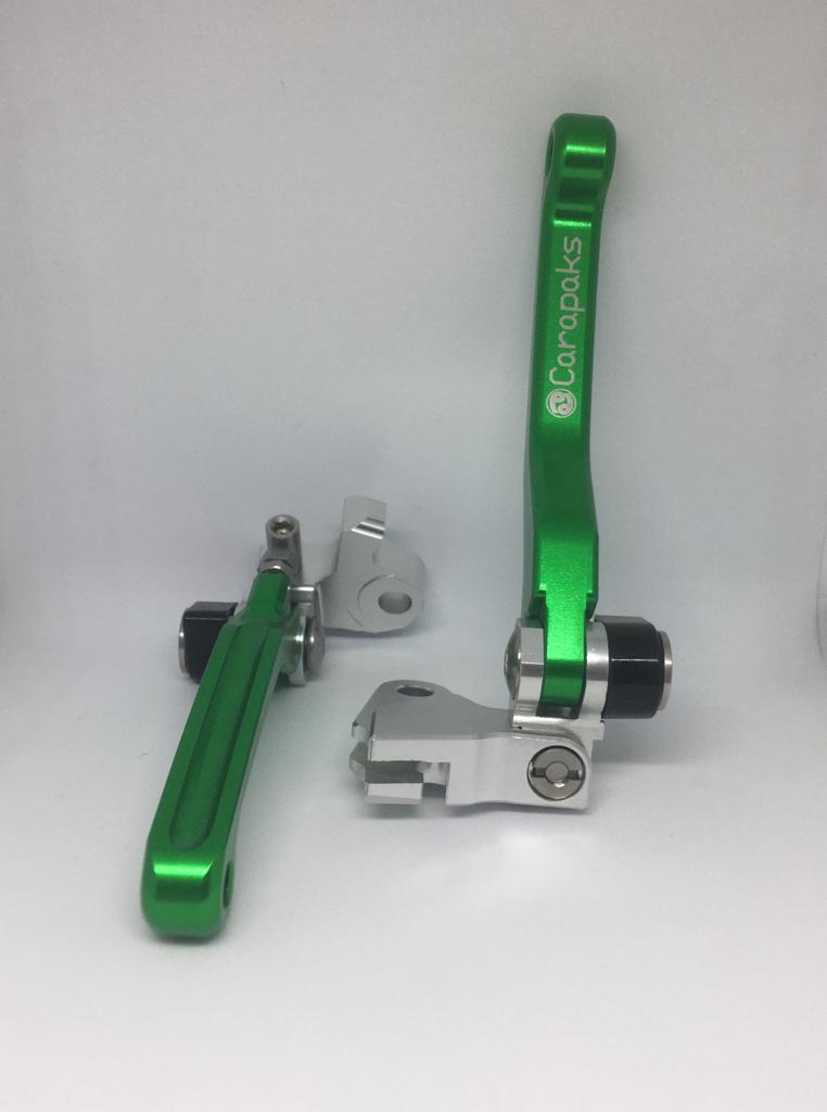 זוג ידיות מתקפלות לקוואסקי KXF 250-450 MY2013-2018 מתקפלות לשני מצבים- אחורה ולמעלה מתאימות לדגמים: KXF 250-450 MY2013-2018 מותג- CARAPAKS